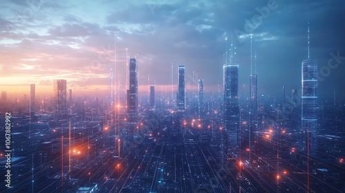 © pongtap, Fototapeta premium Explore the futuristic cityscape illuminated by neon lights