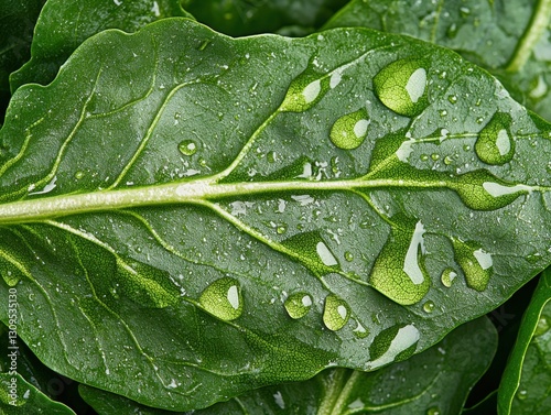 © Supanan, Fototapeta premium Explore the intricate details of nature with this Artistic macro shot of leafy greens, highlighting botanical texture and vibrant color Delve into the fascinating world of spinach, kale, lettuce, and