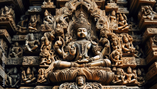 Fototapeta premium Explore the majestic artistry of intricate sculptures depicting divine figures in ancient temples