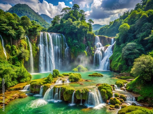© Four888, Fototapeta premium Explore the Majestic Prenn Waterfall in Vietnam's Natural Beauty Surrounded by Lush Greenery and Tranquil Atmosphere