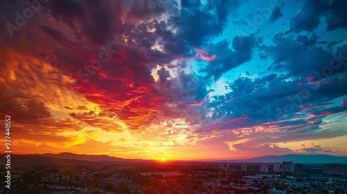 Fototapeta premium Explore the science behind the blue sky. Why does the sky appear blue during the day, and what causes the shift to red or orange during sunset