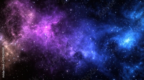 © CLARET, Fototapeta premium Explore the stunning beauty of a vibrant, colorful nebula with countless stars twinkling in the vast expanse of deep space.