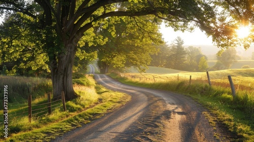 Obraz premium Explore the tranquil beauty of a winding country road, meandering through...