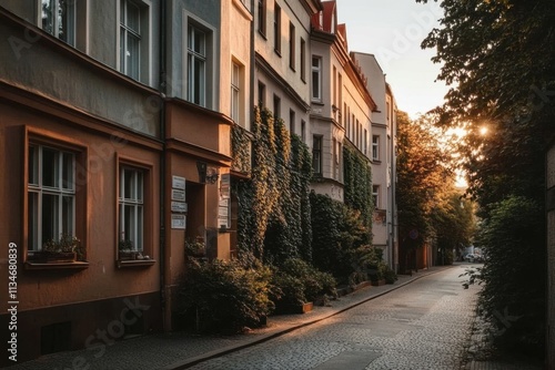 Naklejka premium Explore the unexpected beauty of Berlin's streets, lined with vibrant foliage.
