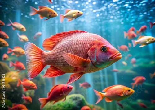 © PomPam, Fototapeta premium Explore the wondrous world of mini tilapia, a tilt-shift aquaponics wonderland.
