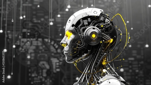 Fototapeta premium Explore this striking visual of a futuristic artificial intelligence head,...