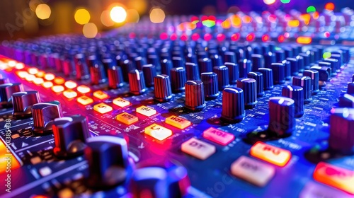 Obraz premium Exploring a Colorful Audio Mixer With Multiple Controls and Lights