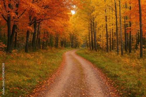 © AkuAku, Obraz premium Exploring a fall-themed woodland trail