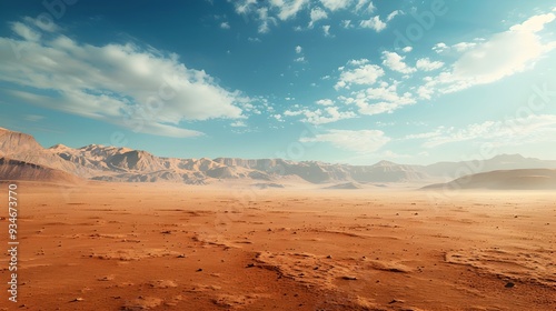 © panu101, Naklejka premium Exploring a Remote Desert Landscape with Endless Horizon and Space for Text