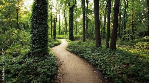 Fototapeta premium Exploring a serene forest path enchanted woodland nature tranquil environment...