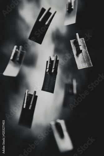 Naklejka premium Exploring Abstract Art: Dynamic Composition of Floating Graphic Elements in Monochrome Atmosphere