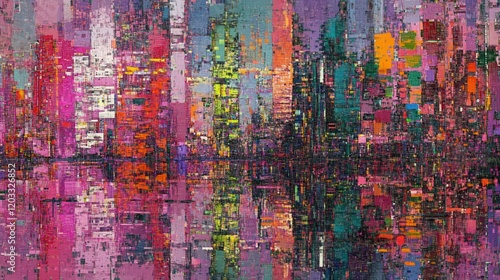 © ntpscl, Obraz premium Exploring Abstract Digital Glitch Textures Urban Setting Visual Art Background Dynamic Environment Vibrant Concept