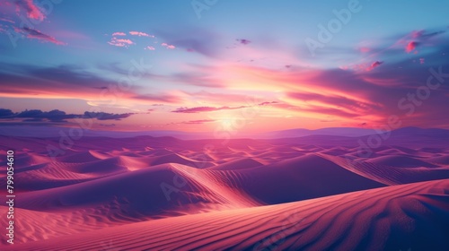Fototapeta premium Exploring an abstract desert at sunset, with sand dunes and fading light ,...