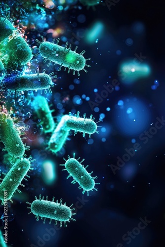 Fototapeta premium Exploring bacteria diversity under a microscope microbial life laboratory setting scientific imagery close-up research concept