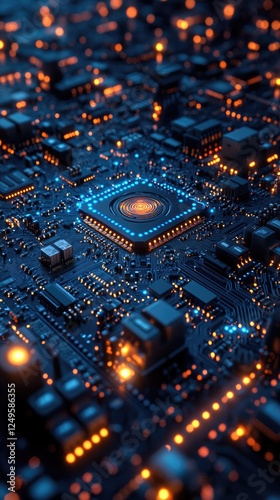 © Inkreatif, Fototapeta premium Exploring Circuit Board's Intricate Design: A Microscopic View of Technology's Inner Workings