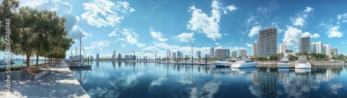 Naklejka premium Exploring City's Waterfront Promenades, Marinas, and Boat Docks Reflecting...