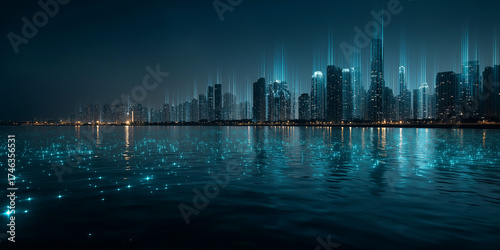 © Thananatt, Fototapeta premium Exploring digital privacy legislation a futuristic cityscape reflection urban environment night viewpoint technology concept