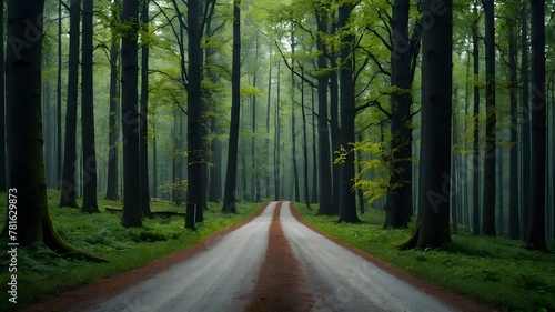 © Ali Khan, Naklejka premium : Exploring Forest Roads Amidst Colorful Leaves and Trees."
