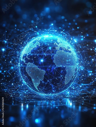 Obraz premium Exploring global connectivity digital network visualization of earth...