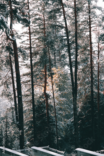 © Ibrahim, Fototapeta premium Exploring in the snowy pine forest.
