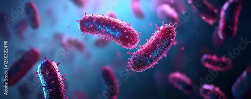 © Siripong, Naklejka premium Exploring microscopic bacteria laboratory science visualization digital environment close-up microbiology insights