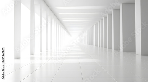 © Ganesha88, Obraz premium Exploring minimalist architecture modern gallery interior design pure white background wide-angle view