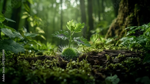 Fototapeta premium Exploring natural transpiration through stomata in a serene forest ecosystem close-up view of a young plant