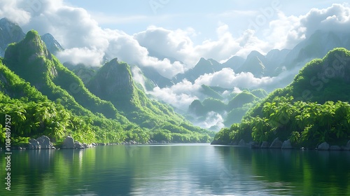 © RAKSIWAH, Fototapeta premium Exploring scenic river valleys mountainous region nature photography lush environment serene viewpoint
