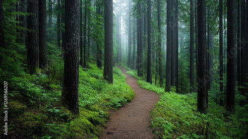 Fototapeta premium Exploring serene forest trail in lush green environment nature peaceful...