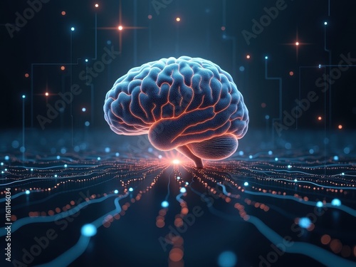 Fototapeta premium Exploring technological singularity through a conceptual digital brain representation in a futuristic setting