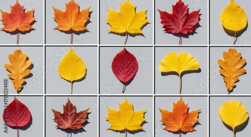 Obraz premium Exploring the Colors of Autumn: Nature's Beautiful Patterns in Yellow, Red, and Orange Foliage Leaves Arrangement