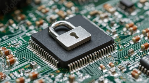 © Ndoomyim, Obraz premium Exploring the Crucial Convergence of Computing Hardware and Advanced Security Mechanisms in Modern Integrated Circuits for Data Protection and System Integrity Enhancement.