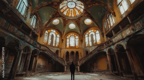 © acilll, Obraz premium Exploring the Eerie Grandeur: A Decaying Mansion's Intriguing Interior