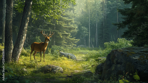 Fototapeta premium Exploring the forest offers a unique opportunity to connect with nature and observe wildlife in its natural habitat.