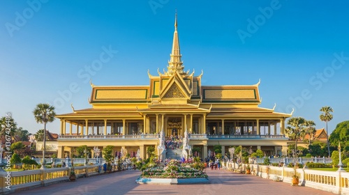 © songpol152, Naklejka premium Exploring the majestic royal palace in phnom penh cambodia a cultural heritage marvel surrounded by scenic beauty