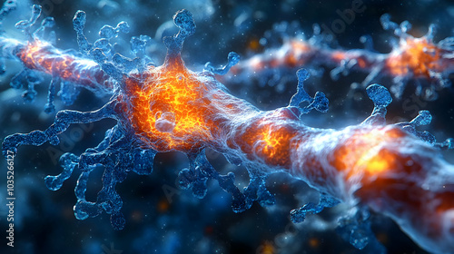 © Siasart, Obraz premium Exploring the Microscopic World: A Journey Into the Intricate Structure of a Neuron
