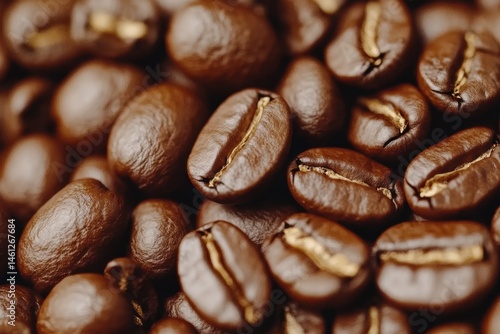 © Oleksandr, Naklejka premium Exploring the rich aroma and texture of roasted coffee beans in a vibrant setting