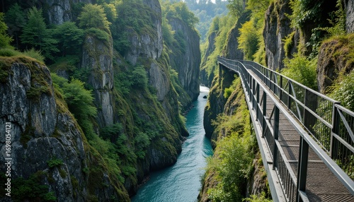 Obraz premium Exploring the scenic gorge nature trail mountainous region serene landscape...