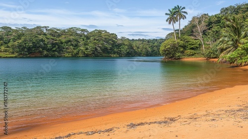 Fototapeta premium Exploring the tranquil beach and lush forest landscape tropical paradise...