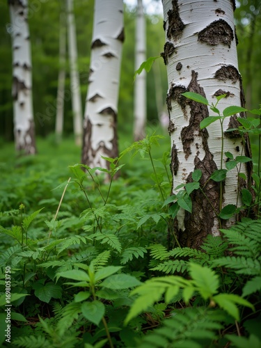 Obraz premium Exploring the tranquil birch forest nature photography lush green environment close-up perspective