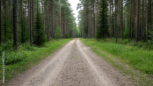 Fototapeta premium Exploring the tranquil pathways of nature a scenic dirt road through a serene...