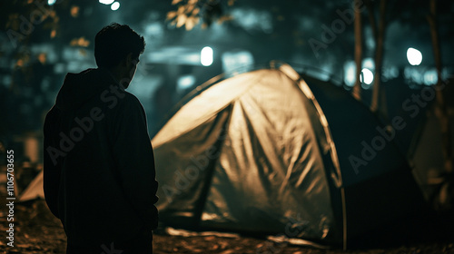 © Shahazadi, Fototapeta premium Exploring the tranquility of nighttime camping by the glowing tent in the woods
