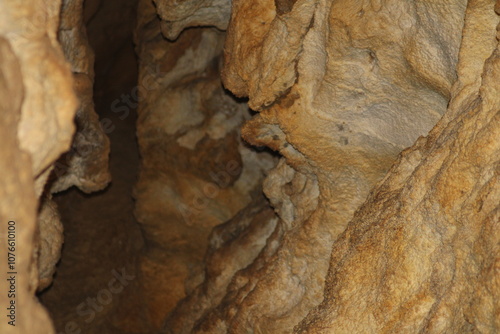 © BalzsFerenc, Obraz premium Exploring the unique rock formations inside a limestone cave during a guided tour in the early afternoon