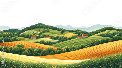 © Sophia, Obraz premium Exploring tranquil rolling hills countryside landscape art bright day