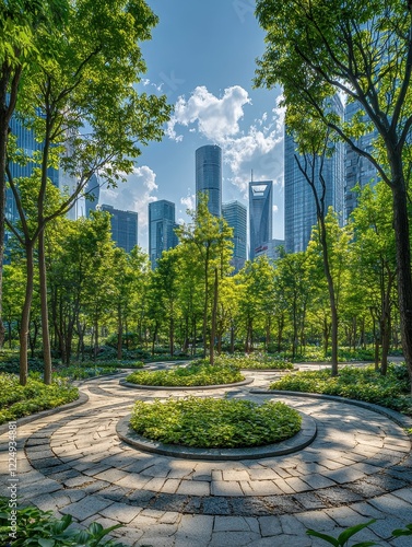© K silver, Fototapeta premium Exploring urban nature trails in shanghai park pathways scenic views lush environment serene atmosphere