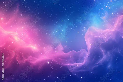 © Dwiyan, Obraz premium Exploring Vibrant Pink and Blue Nebula Clouds with Scattered Stars
