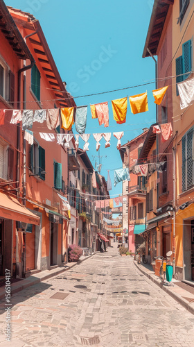 © Amir, Fototapeta premium Exploring Vibrant Streets, Colorful Laundry, Tuscany, Travel Photography, Sunny Day, Street View, Cultural Charm