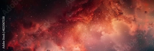 Naklejka premium explosion in space, dark red and white particles swirling in the air,...
