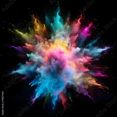 © abdullah, Fototapeta premium explosion of colored powder on black background