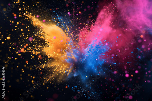 Obraz premium Explosion of paint on the dark background colorful particles.